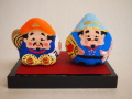 五箇山和紙の紙塑民芸品の恵比寿・大黒天人形セットです。紙塑民芸品とは、和紙を粘土状にして形を形成し、乾燥したものにさらに和紙を貼り、着色をします。ひとつひとつが職人によって握られ絵付けされ、すべての工程を経て出来上がるまで、約一週間かかります。和紙と糊のみで作られているために生まれる、ゴツゴツとした自然な形が、ひとつひとつ違った表情を作り出します。素朴で温かみのある和紙の恵比寿・大黒天。見ているととても明るく元気になりますよ!※1点、1点手作業で作られているため、若干の違いはございますが、ご了承ください。また、商品画像は、できるだけ実商品に近い色にしておりますが、ご覧になるモニタ環境により、実際の色と異なる場合がございます。予めご了承ください。
