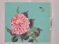 一枚一枚手摺りで仕上げた木版画の色紙です。椿と小鳥が描かれています。